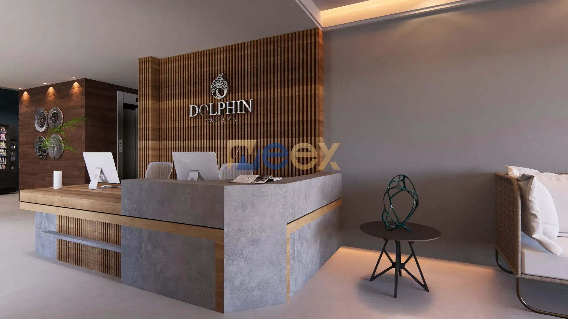 Elevador social e recepção moderna